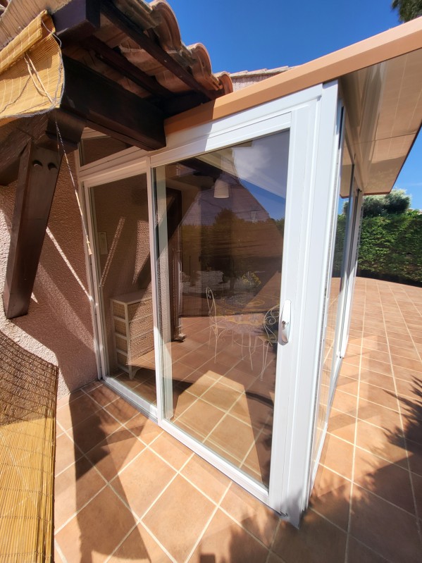Mise en place d'une fermeture de terrasse en panneau sandwich aluminium pour créer un sas d'entrée à Le Pradet. Alliant thermique et sécurité