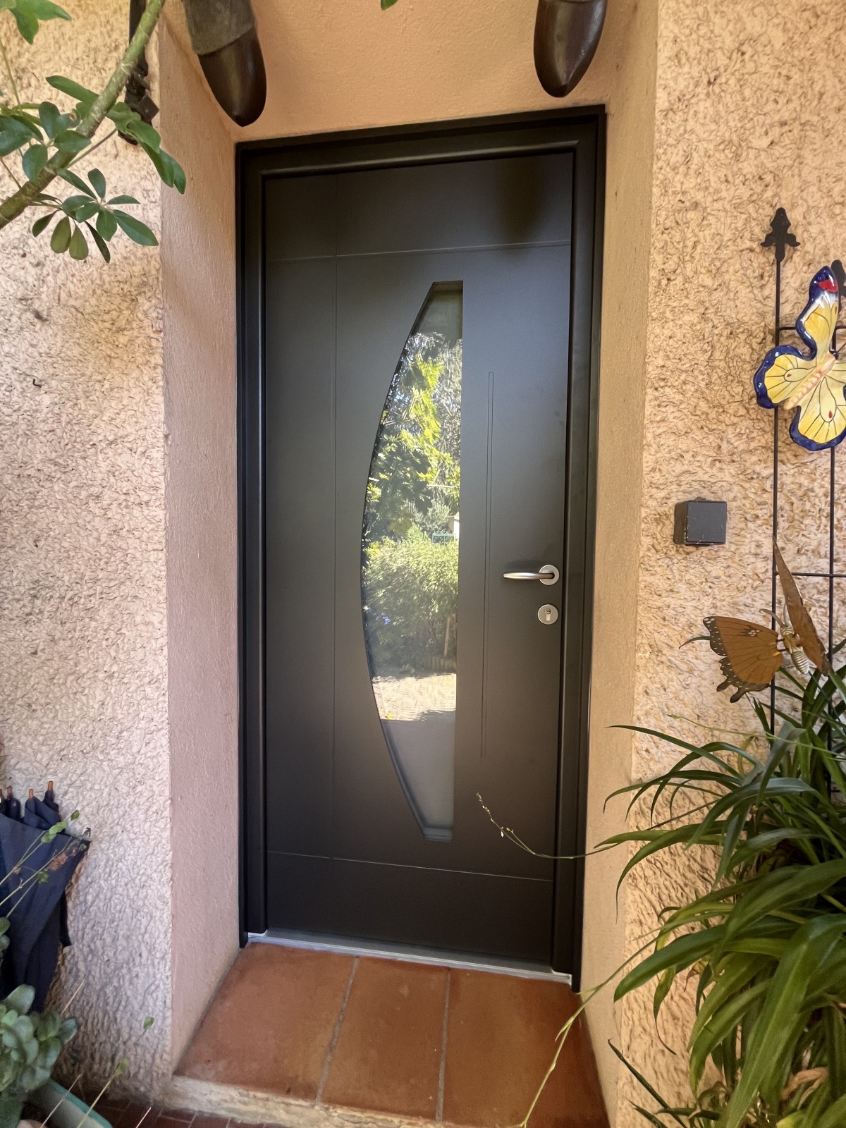 Mise en place en rénovation d’une porte d’entrée, aluminium 80mm d’épaisseur à Six fours.