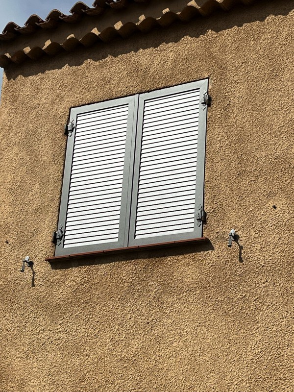 Dépose des anciens volets battants mise en place des nouveaux volets aluminium sur gonds existants