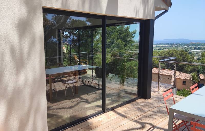 Cette réalisations sur HYERES a été équipée de coulissants, de galandages, de châssis fixes et d'ouvrants à la française.