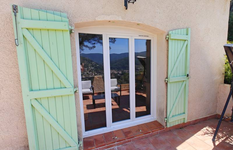 Grosse différence de performance énergétique de cette maison sur SOLLIES TOUCAS entre l'ancienne menuiserie bois et la menuiseries PVC cintrée double vitrage.